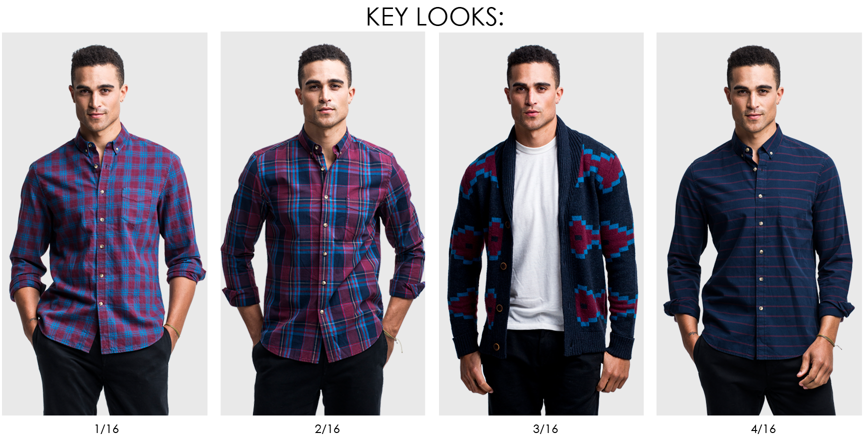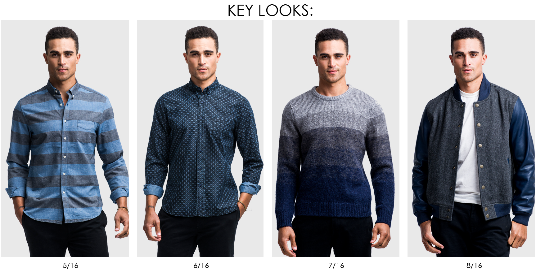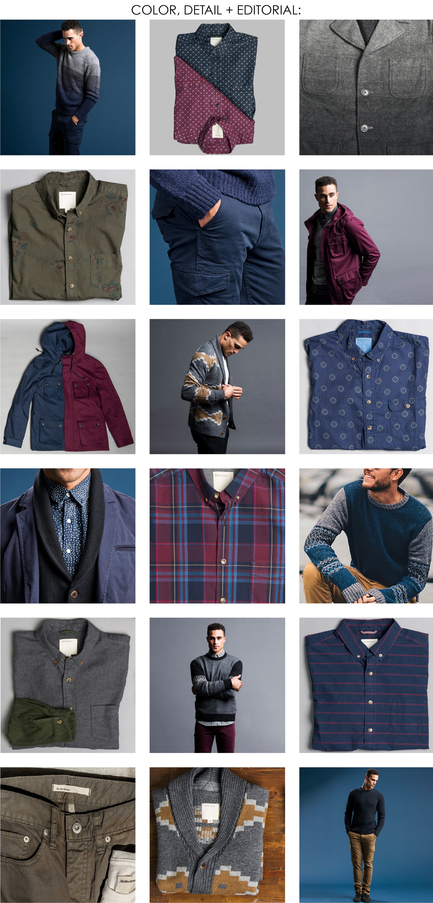Wearable work-to-play staples are polished with an uptown sophistication but irreverent with a downtown resilience. Core items include plaid and stripe poplins, foulard prints, indigo chambrays, garment dyed blazers and chinos. Athletic inspired pieces range from baseball tees, henleys, crew sweatshirts and varsity jackets. Classic sweater silhouettes are elevated by premium yarns, ombre stripes, fair isle and jacquard patterns.