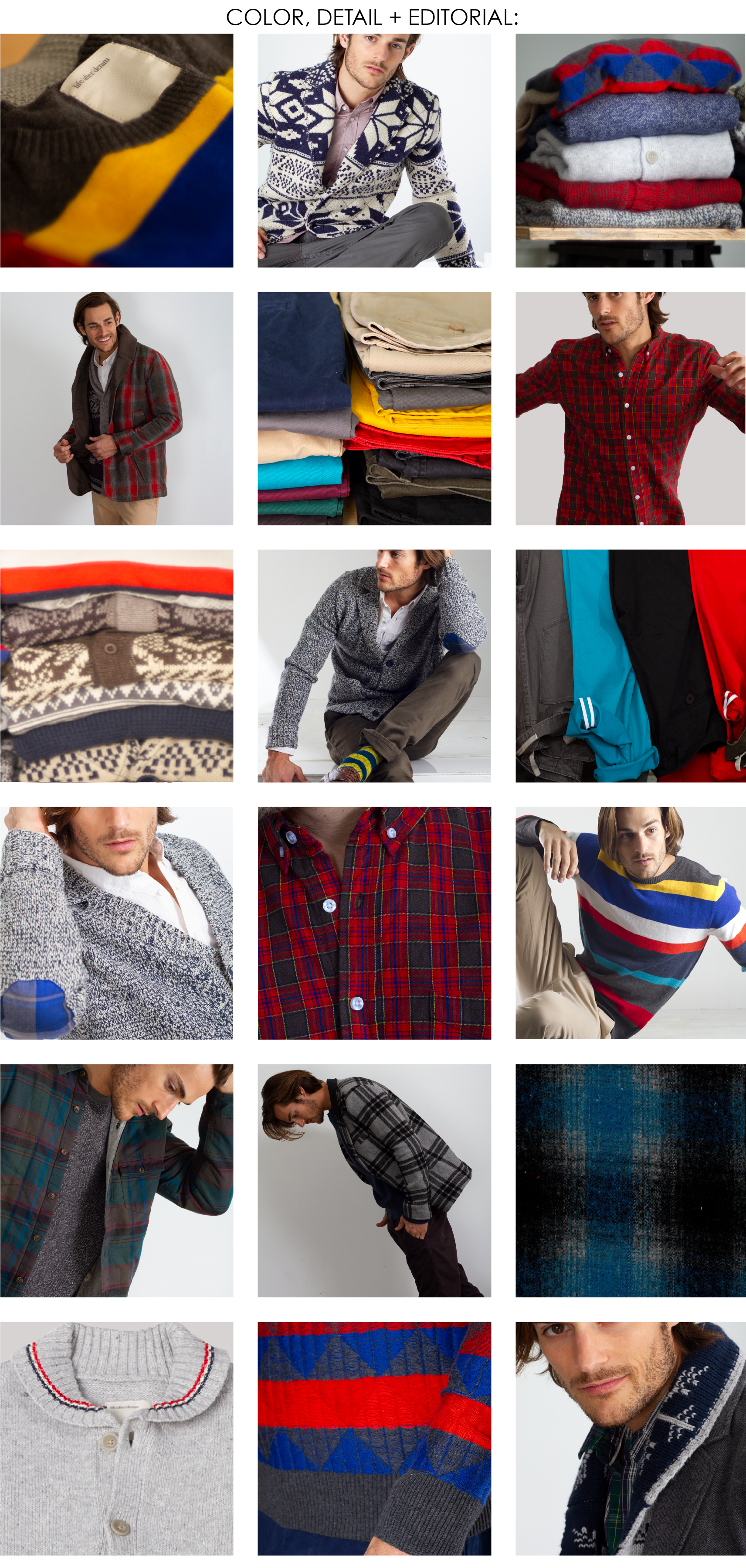 A celebration of modern day sprezzatura where time honored classics are combined with Italian panache. The collection is simple, bold and casual. Core pieces range from solid button downs, bright cashmere sweaters and wool blazers. Festive items include holiday tartans, jersey lined flannels, waffle knits, fair isle cardigans, striped crews and a colorful assortment of chinos