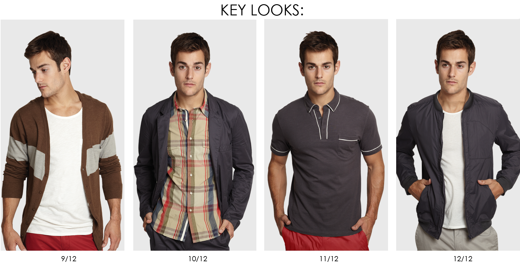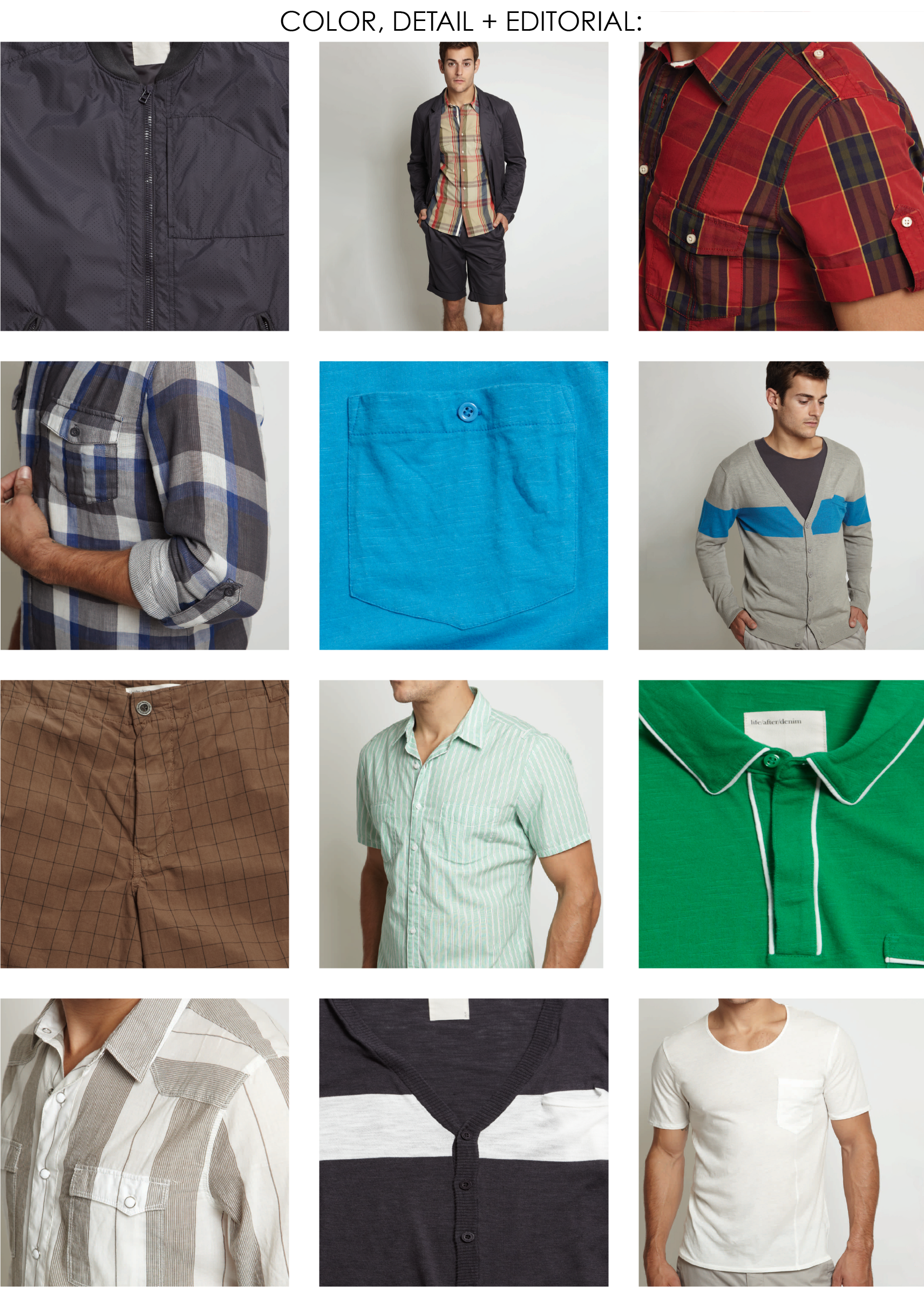 Retro modern with a classic, quirky appeal. Tailored blazers, perforated windbreakers, traditional madras and seersuckers are paired with colorful chinos and pleated linen shorts. Classic pocket tees are updated with novelty seam lines, polos with contrast trims and cardigans with bold engineer stripes.