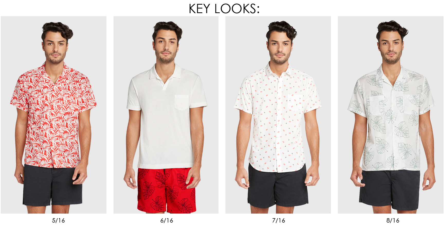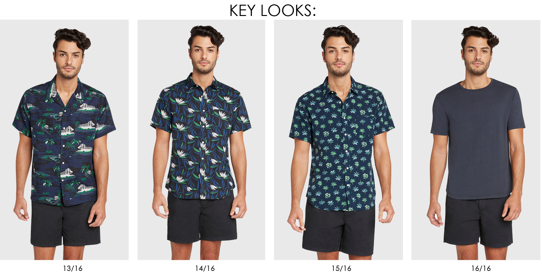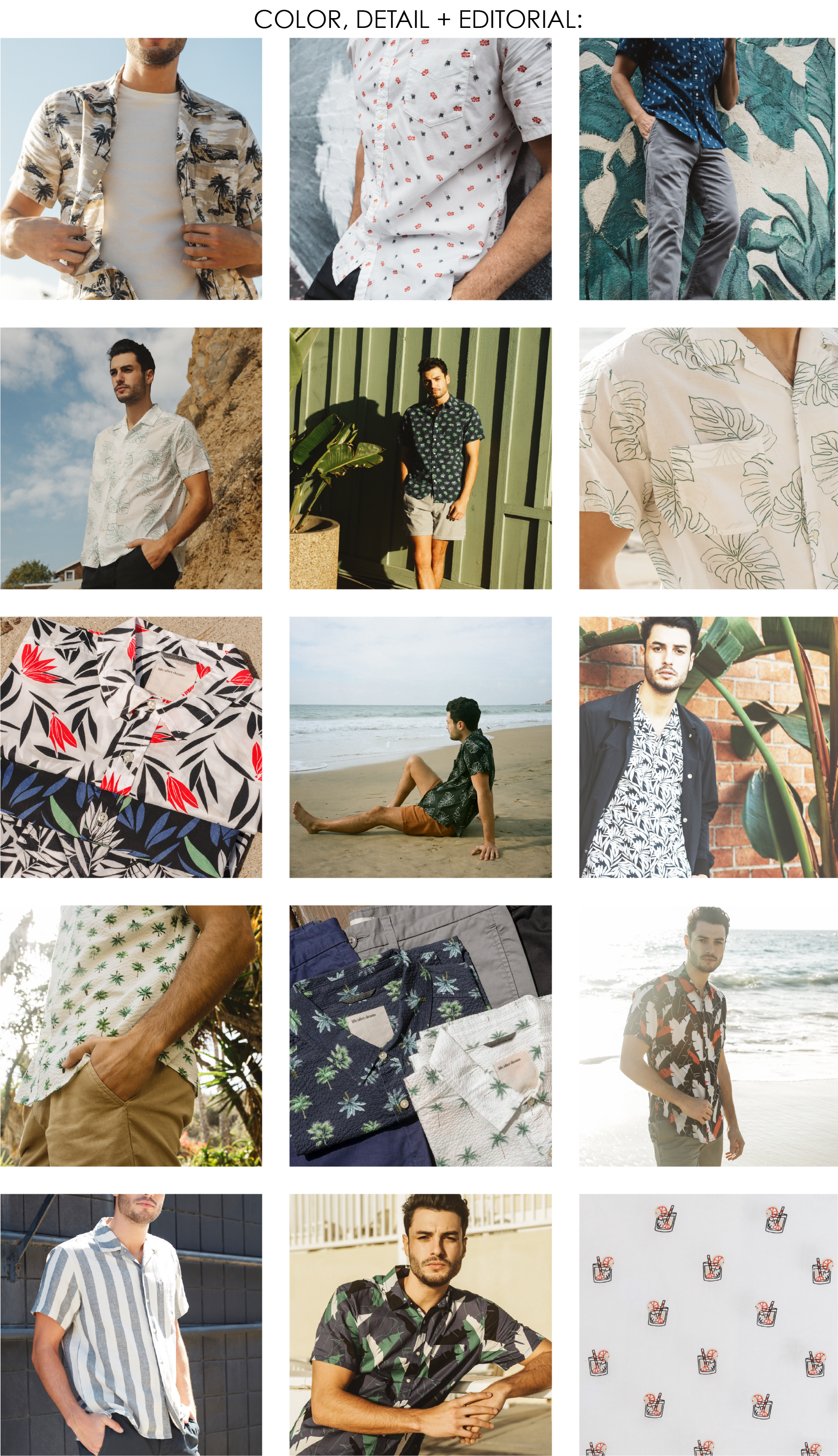 A resort lineup of time honored favorites with modern perspective. Nods to travel and retro vacay style take shape with colors and prints that evoke a sense of nostalgia. Tropical prints are injected throughout the collection via beach scenes, palm prints, ditsy pineapple and mojito motifs. Shorter inseams, classic polos and cuban collars tap into the 50's. Bright color blocking vertical stripes and geometric patterns reference the late 80's and early 90's. The result is a contemporary mix of classic getaway staples with retro charm.